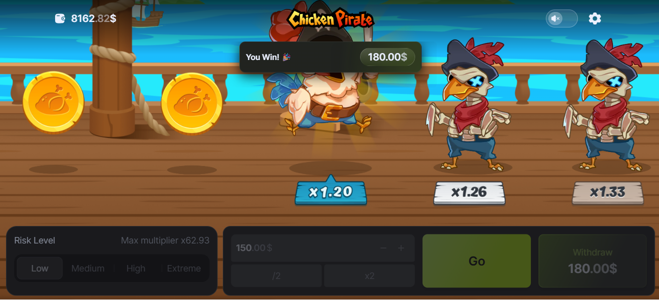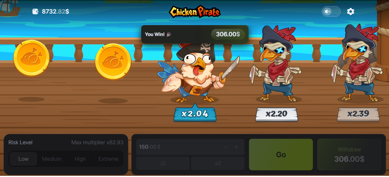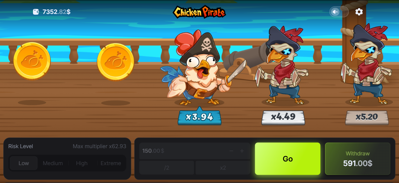 At first glance, Chicken Pirate appears straightforward. You place your bet, start the round, and watch as the chicken pirate embarks on its journey across the screen. The multiplier begins to climb, and your goal is to cash out before the chicken crashes. The tension builds as the multiplier increases, and the decision to cash out becomes more critical with each passing second.